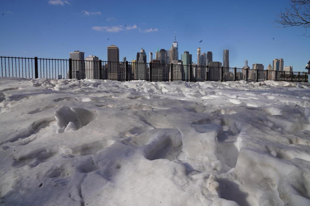 这是1月31日在美国纽约拍摄的积雪。新华社记者张凤国摄