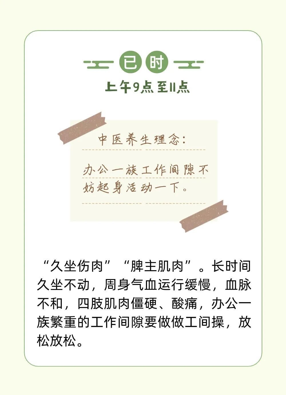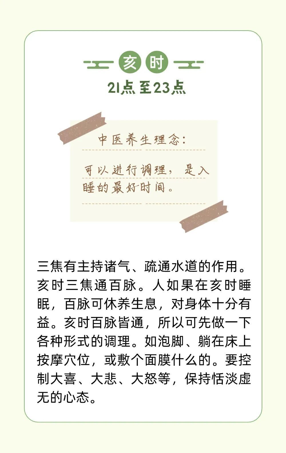 一年有十二月之分,一天也有十二时辰之分。养生,不仅要符合一年四季的变化,还要符合一日十二时辰的规律。每个时辰对应一条经脉,每条经脉又联系着相应的脏腑。所以,要根据时辰中经气的盛衰规律进行作息,也就是十二时辰养生。